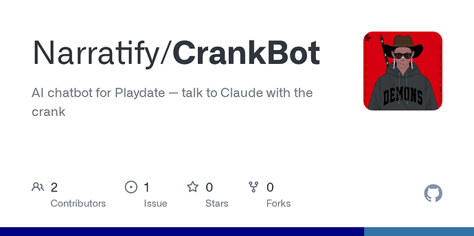 Hi everyone! I built CrankBot — an AI chatbot that runs on your Playdate via a self-hosted API server.