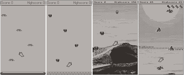 That’s when I decided that my first project after Rocky Stairs would be a doodle jumpy platforming game improving on everything I disliked about Tobu Tobu Girl, while also putting my own spin on things. The first prototype for the creatively titled “jump game” was created over a weekend and was fun as heck. The game then was developed over the timespan of a bit more than 2 months. Here’s the visual evolution of the game over time:
