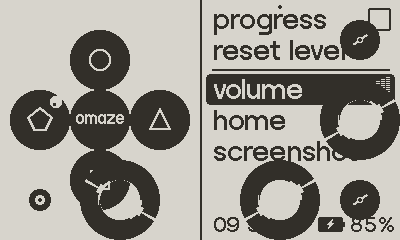 So you can reproduce this screenshot by opening Omaze, then pressing MENU, then LOCK, then LOCK (again, maybe 2x, to unlock). After that, opening and closing the MENU doesn’t fix it - you have to exit the game or otherwise trigger a fullscreen redraw.