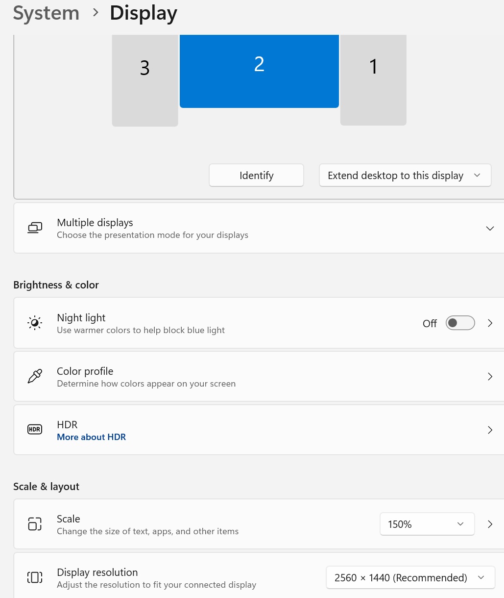 I then looked at my display settings and saw that I’d altered the scale for the main monitor, but not the others: