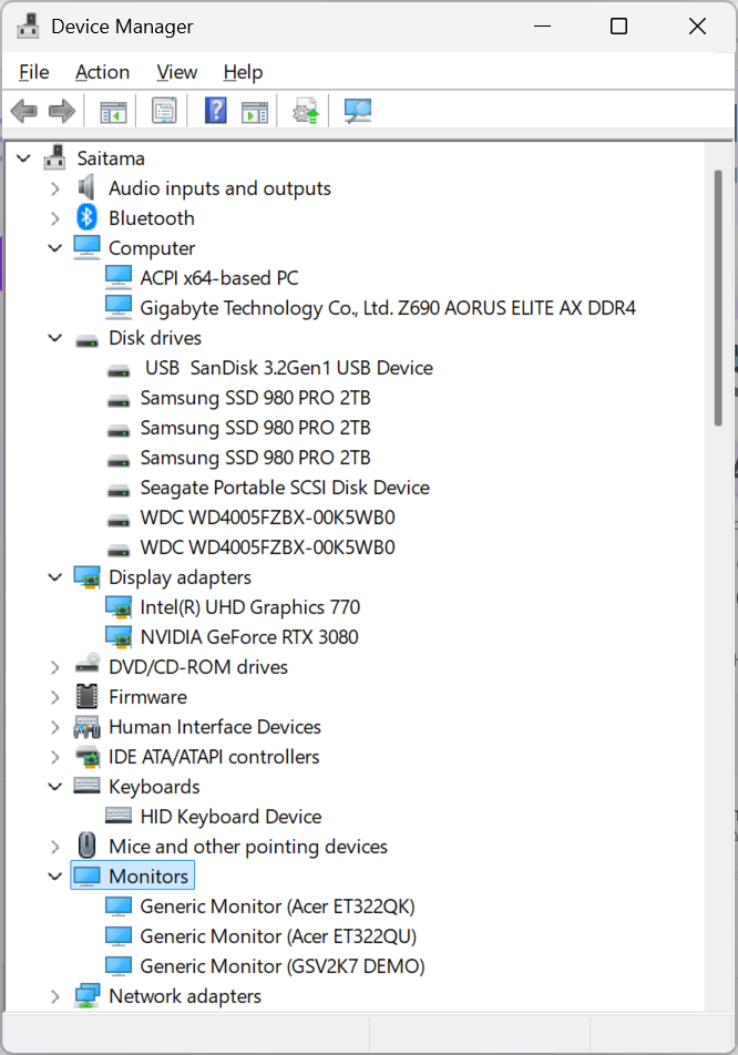 The third monitor (not the primary one - GSV2K7) is actually a third 32” Acer on a KVM switch - switches between Windows and a MacMini (Mac is currently off and all 3 monitors doing Windows).