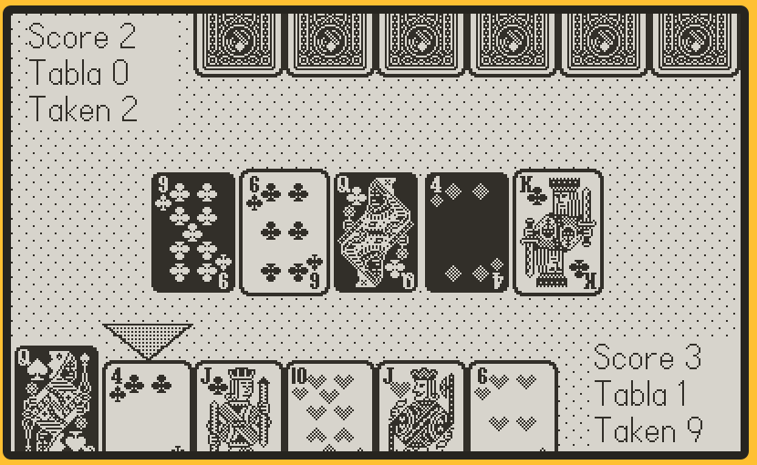 Hi y’all! Been a Playdate owner since the start, and I’ve finally started to write a game for it. I’ve worked as a software developer for many many years now, but I’ve never written a game before until now. I decided to make things “easy” on myself by implementing my favourite card game, Tablić so I can focus on the game programming aspect of things. And also so I can take my favourite card game wherever I take my favourite handheld system ![]()