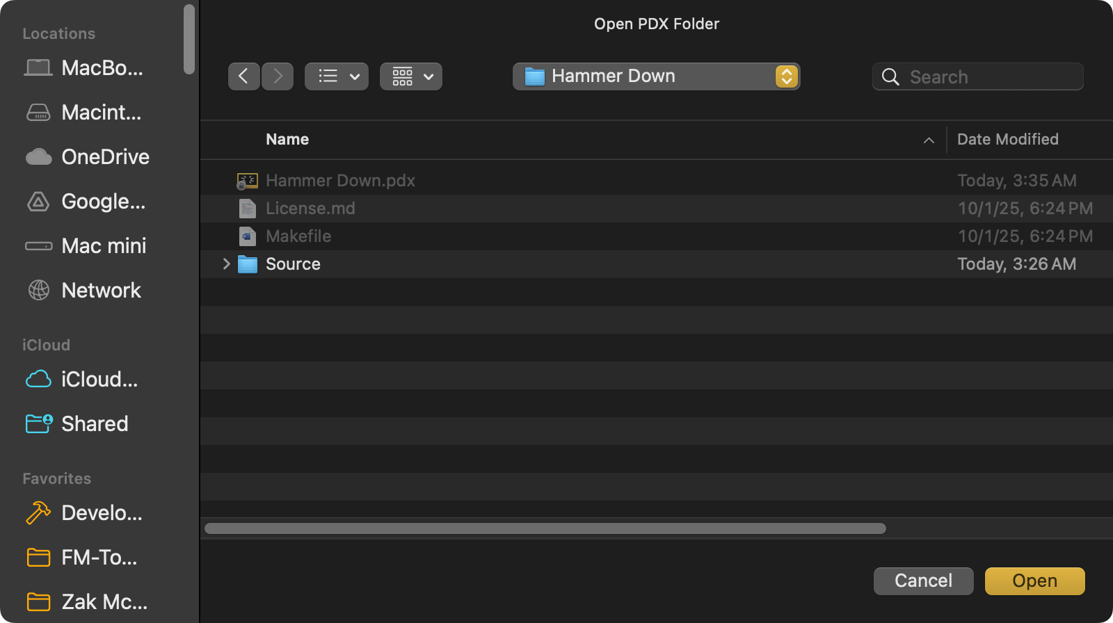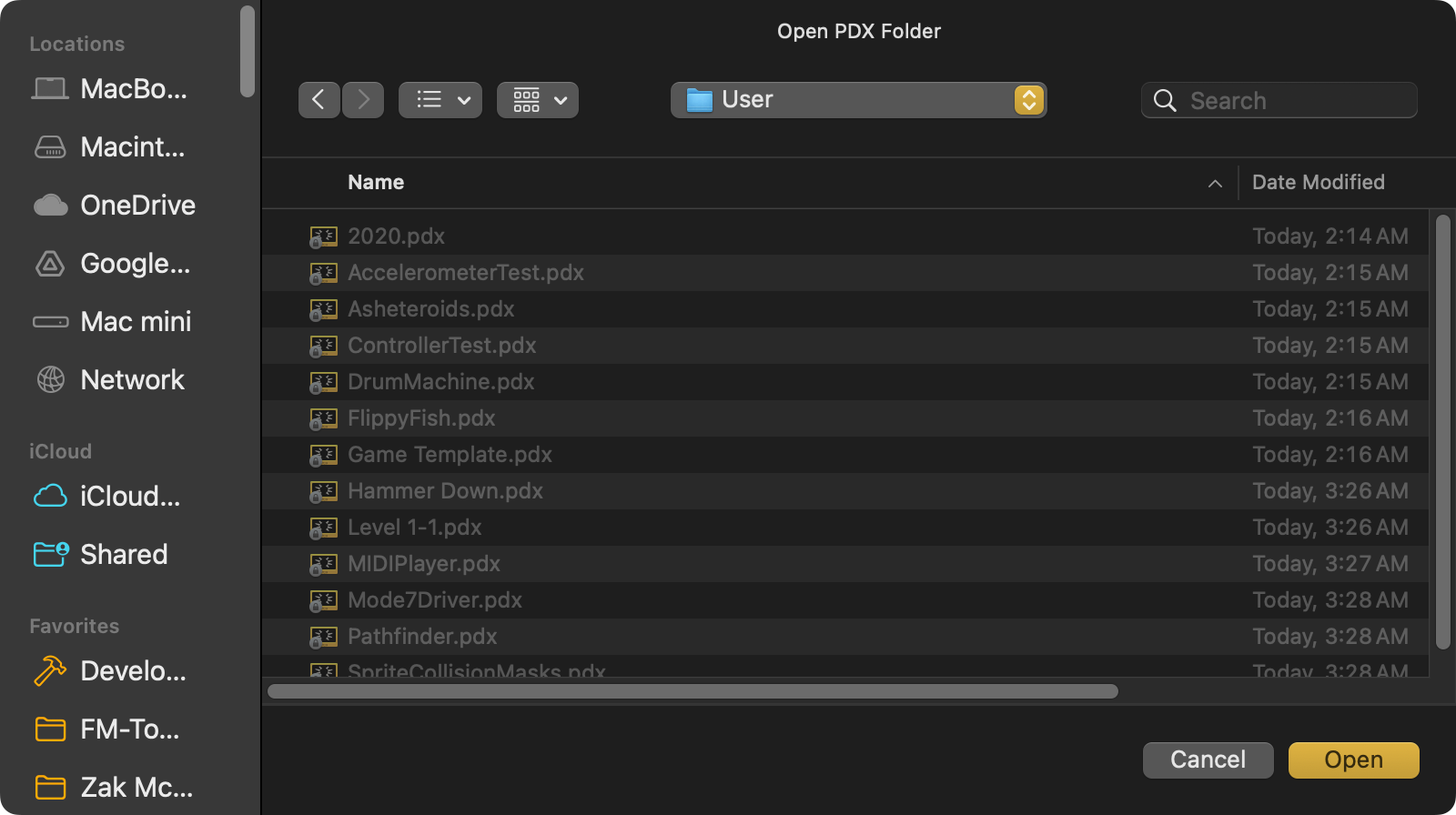 If I attempt to use the "Upload Game To Device..." option, in the "Device" menu, Playdate Simulator will not recognize any .pdx file at all and I can't select the .pdx file.